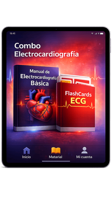 El Combo de Electrocardiografía reúne materiales esenciales diseñados para facilitar el aprendizaje del ECG de forma clara, estructurada y práctica, reforzando la comprensión teórica y la memorización rápida.